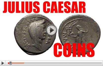 Article and Video exploring the types of coins of Julius Caesar and Related Available for Sale on eBay